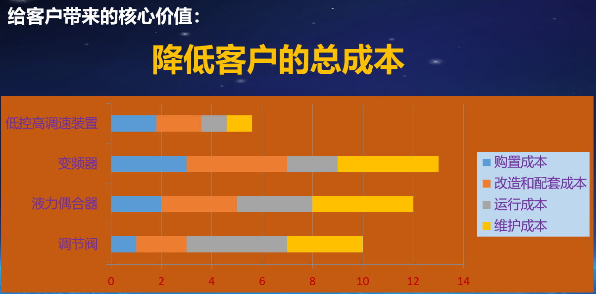 可無 60~99% 調(diào)整轉(zhuǎn)速,節(jié)能 ,不改變電機(jī)與水泵的連接方式,無諧波 ,不會(huì)傷害電機(jī),不影響電網(wǎng)功率因數(shù),無 EMI 電磁波干擾,使用壽命長,降低擁有者總成本,占空間小,改造周期短,調(diào)速能量可以回收,安全,可靠,降低設(shè)備的維修率和維修費(fèi)用